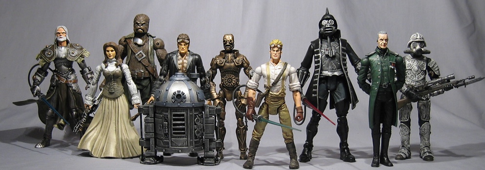 Holy smokes! Sillof, the dude who made the Victorian Justice League figures from waaaaaaay back, has set his sights on Star Wars. The results are some pretty damned awesome steampunked-out Star Wars figures (as seen at Slashfilm), and I’m happy to show ’em off. Check out Sillof’s site for the how and why of the figures, along with more pics.