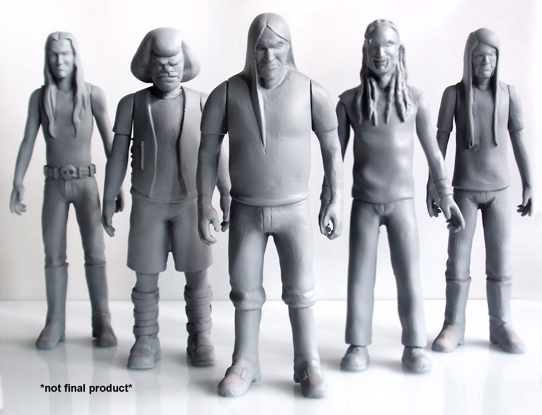 Shocker Toys?makers of the long-announced Indie Spotlight toys?just sent me news that their Metalocalypse action figures will be only sold as a set at the San Diego Comic Con. I find this a bit weird, since I would think figures of Dethklok would do reasonably well outside of the San Diego area. I also find it weird that Shocker Toys doesn’t have a picture of the painted figures when SDCC is only two months away (nor do they have a price or what the run is). But I figured I’d post on it since the unpainted prototypes do look fantastic, which, humorously, is bad news for all Metalocalypse fans not attending the show.