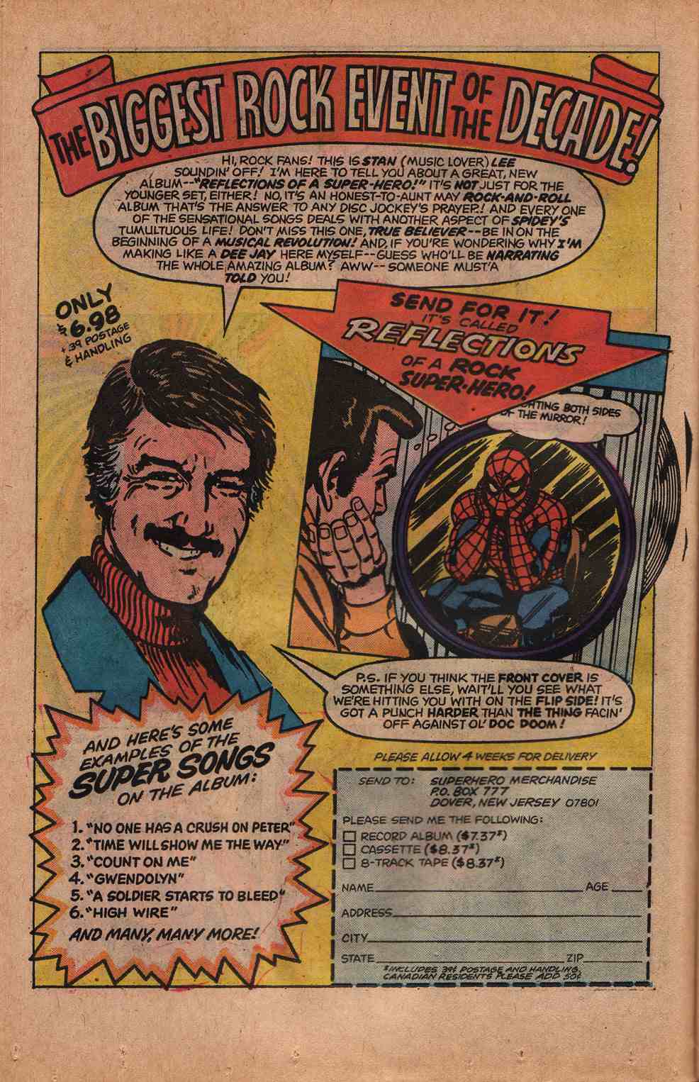 Did Stan Lee secretly want to be Pete Townshend? You’d be forgiven for thinking so after listening to 1975’s Rock Reflections of a Superhero LP. The album’s 22 tracks span the origin of Spider-Man through to the death of Gwen Stacy, with Stan the Man narrating throughout. (Fortunately, he never starts singing). Listeners are treated to a genre-hopping group of songs that vary from Simon and Garfunkel-flavored moodiness (“Peter Stays and Spider-Man Goes”) to bouncy pop (“Spider-Man”). The album’s highlight is “Doctor Octopus, Part 2,” in which a Robert Plant sound-alike calls out the various Marvel heroes and rhymes “Hulk” with “sulk.” Clearly we are talking about the apex of 1970s music here. This wasn’t Spidey’s only vinyl oddity either, in 1966 Tifton released a 45 that featured a song and an adventure, and the 1972 “Rockomic” From Beyond the Grave included music from Ron Dante (of The Archies’ fame) and starred Rene Auberjonois as Peter Parker/Spider-Man. All of these are required listening.