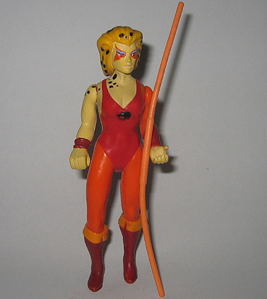Cheetara, the sexy female Thundercat (although much more sexier in the cartoon than in action figure form), caused many of us to entertain our first mental arguments on the ethics of bestiality. She came with Battle-Matic action to swing around her staff, and some versions of her came with a PVC WilyKit to match the WilyKat that came with Tygra.