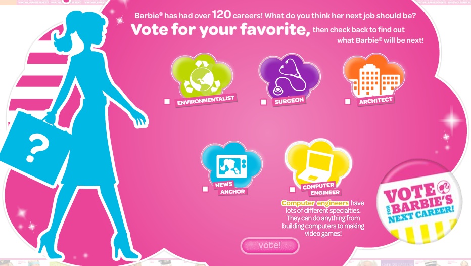 Go to Mattel to vote. Spread the word. Tell your friends. Let’s make this happen. Not just for the Barbie-doll playing girls of the world, but for all of us.