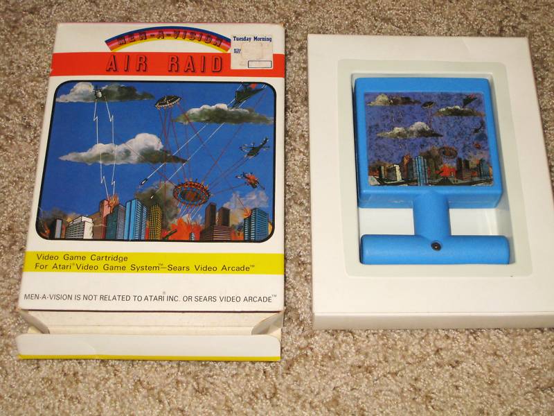 he excitement today comes from an auction for Atari 2600’s “Air Raid“, a baby blue cartridge with a strange