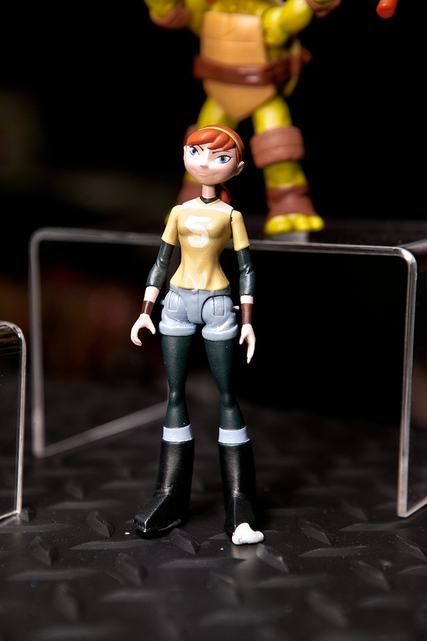 ?In less exciting news, the new April O’Neil looks like… well, this. If her character appearance wasn’t designed by a committee, I’ll eat one of her action figures. “We need anime eyes! Kids love that Japanimation!” “Jean shorts and legging! So she’s slightly feminine, but not so girly as to terrify young boys!” “And an indistinct sports jersey, too! She she’s a tomboy, which is like a boy, but a girl! It’s the best of all worlds!”
