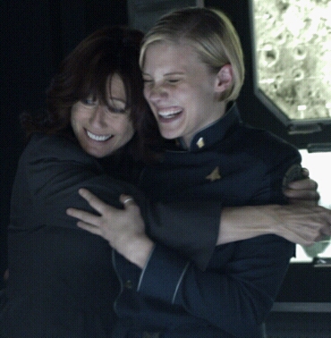 Despite contact via the wireless, skepticism remained until at last a Raptor and escort Vipers landed on the Galactica, carrying Admiral Helena Cain, welcoming the crew of the Galactica back to the Colonial Fleet. Military discipline is for the most part thrown out the airlock as the Galactica crew erupts into cheers and hugs, welcoming this new batch of humans. Of course, over the course of the episode, the relationship between the Galactica and Pegasus crews goes to shit pretty quickly, and before the end of the episode, Vipers from both ships are playing a game of interstellar chicken. For a time though, the universe seems a lot less hopeless, and the Rag Tag Fugitive Fleet is not as alone as they once though.