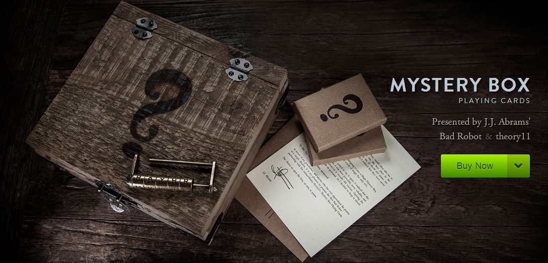 In what kinda-sorta amounts to a stab at self-parody, J.J. Abrams recently put a cryptic countdown online for something called a “mystery box,” a literal wooden box bearing the name given to his favorite story device – intense secrecy surrounding something that usually turns out to be a letdown. Indeed, the box, “made of 100-year-old reclaimed wood,” now turns out to contain 12 decks of sealed playing cards, “art-directed” by Abrams and Jonathan Bayme, made in partnership with card manufacturers Theory 11.