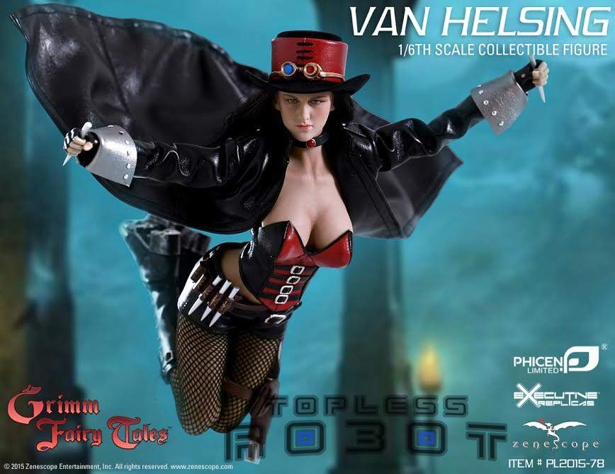 From Executive Replicas, the company that recently announced a 12″ Stan Lee doll, comes what would seem to be a no-brainer of a line – 12-inch figures based on Zenescope’s busty, scantily clad reinterpretations of fairy tale characters. Each one features a seamless outer skin over an articulated, stainless steel skeleton, and ironically, I think this is one case where business will do well by being full of busts. Up first? Liesel Van Helsing, who features the additional selling feature of being steampunk.