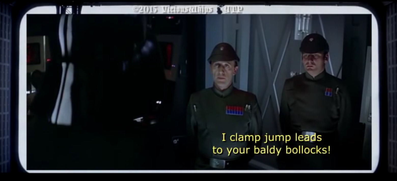 In this mashup video “Scot Wars,” we see just how much more of an “arsehole” Lord Vader would have been, had he been Scottish and operated like Malcolm. Darth Tucker is not as forgiving as Anakin, and he is decidedly NOT a good man, Clara.